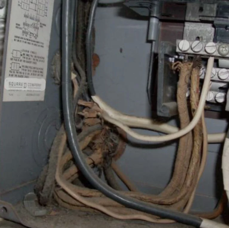 Over time, the fabric insulation on cloth wiring can degrade due to exposure to heat, moisture, pests, and physical wear. As the fabric becomes brittle or frayed, it can expose the underlying conductors, increasing the risk of electrical faults, shocks, and fires. Like knob and tube wiring, cloth wiring systems typically lack a grounding conductor, which is a critical safety feature in modern electrical systems. The absence of grounding increases the risk of electrical hazards and can make it challenging to safely install or use modern appliances and electronics.